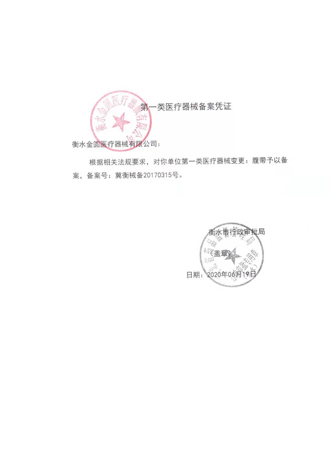 腹帶**類醫(yī)療器械備案憑證